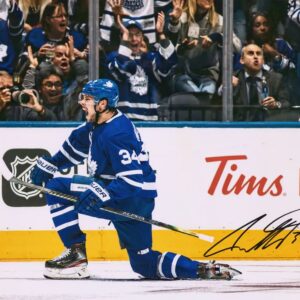Auston Matthews Toronto Maple Leafs Autographed 16″ x 20″ Blue Jersey Goal Celebration Photograph