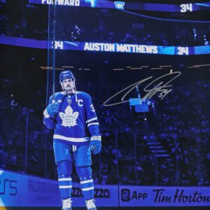 Auston Matthews Toronto Maple Leafs Autographed 16″ x 20″ Blue Jersey Pregame Salute Photograph