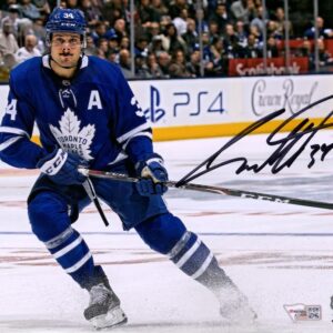 Auston Matthews Toronto Maple Leafs Autographed 16″ x 20″ Blue Jersey Stopping Photograph