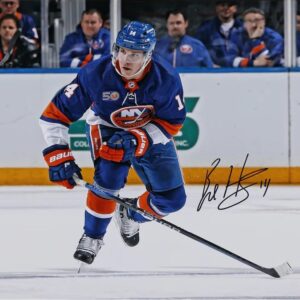 Bo Horvat New York Islanders Autographed 16″ x 20″ Blue Jersey Skating Photograph