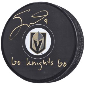 Jack Eichel Vegas Golden Knights Autographed Hockey Puck with “Go Knights Go” Inscription