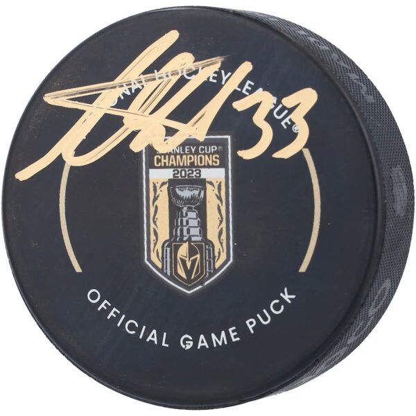 Upgrade your collection of Vegas Golden Knights memorabilia by picking up this Adin Hill autographed Banner Raising Official Game Puck. Featuring a hand-signed signature from the 2023 Stanley Cup champion, it's the perfect way to emphasize your unwavering support for Hill for years to come.