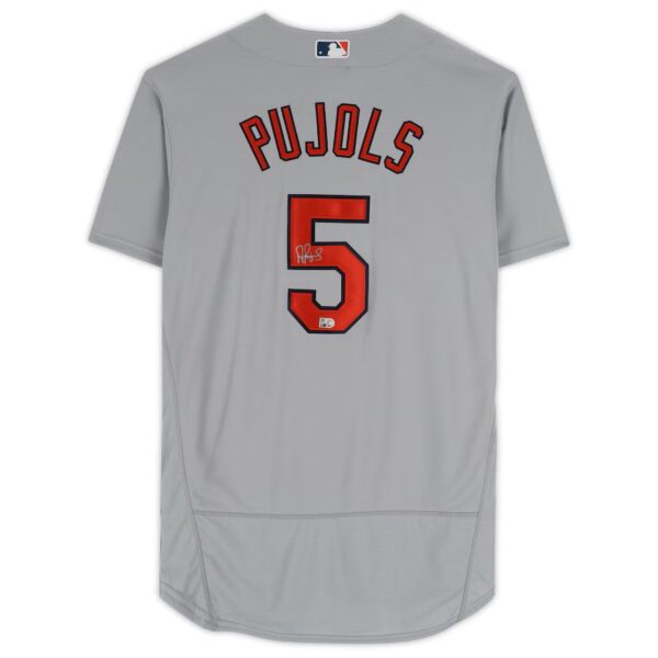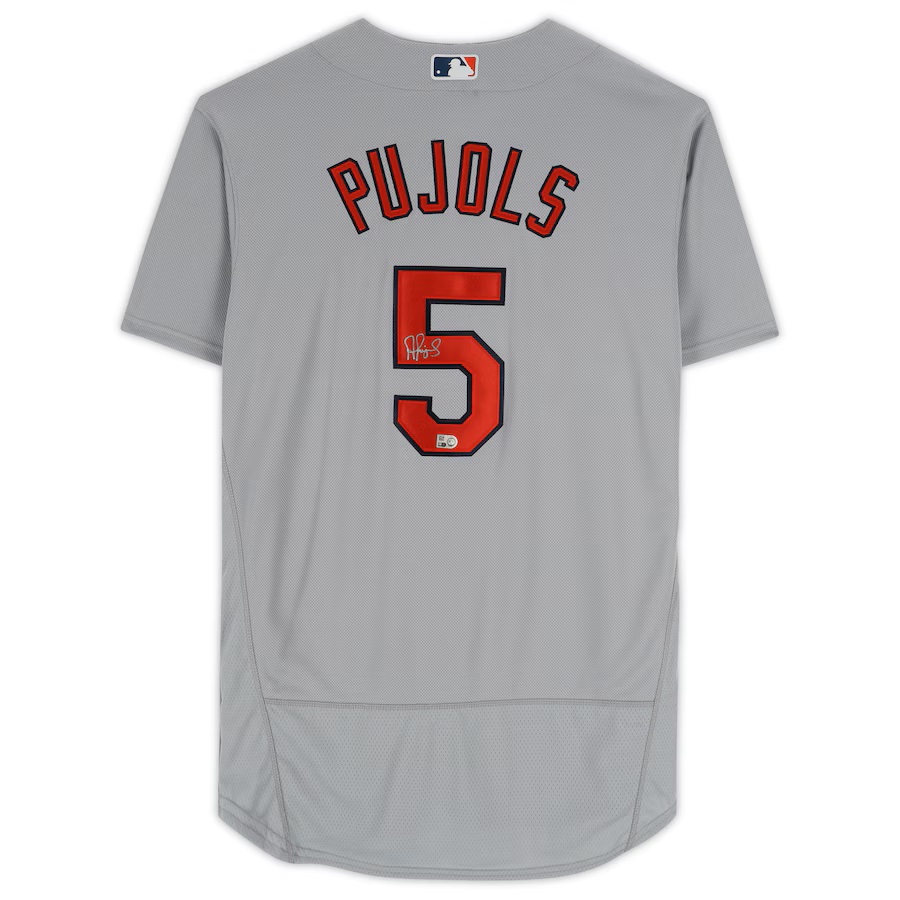 Upgrade your collection of St. Louis Cardinals memorabilia by picking up this Albert Pujols Autographed Nike Gray Authentic Jersey. Pujols was originally drafted by the Cardinals in the 1999 MLB Draft and he would play with the team from 2001-2011, then would return to St. Louis in 2022 for his final career season after spending time with the Angels and Dodgers. On September 23, 2022, he became the fourth player in MLB history to record at least 700 career home runs. On top of achieving at least 700 career home runs, Pujols also ranks second all-time in RBI and 10th all-time in total hits. You can remember his outstanding 22-year career by making this signed jersey part of your collection.
