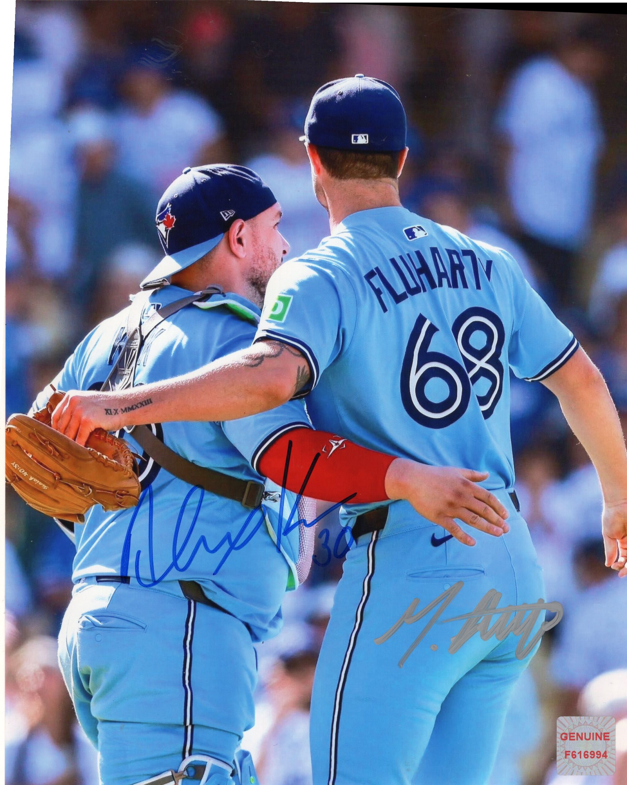 / Alejandro Kirk & Mason Fluharty Toronto Blue Jays Autographed Hugging 8×10 Photo