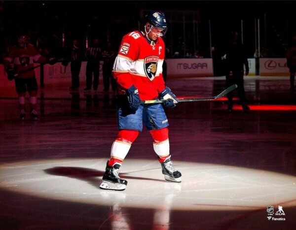 Aleksander Barkov Florida Panthers Unsigned Red Jersey Pregame Spotlight Photograph