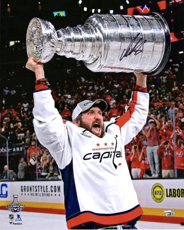 Alexander Ovechkin Washington Capitals Autographed 8″ x 10″ 2018 Stanley Cup Champions Raising Cup Photograph