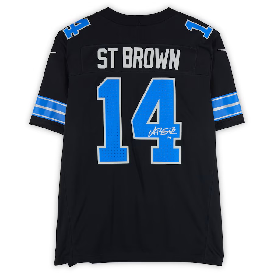 Elevate your collection of Detroit Lions memorabilia with this Amon-Ra St. Brown autographed Black Nike Game Jersey. It features eye-catching team details and a distinct signature from the superstar wide receiver. Additionally, this collectible includes an individually numbered, tamper-evident hologram that can be verified online to certify authenticity.
