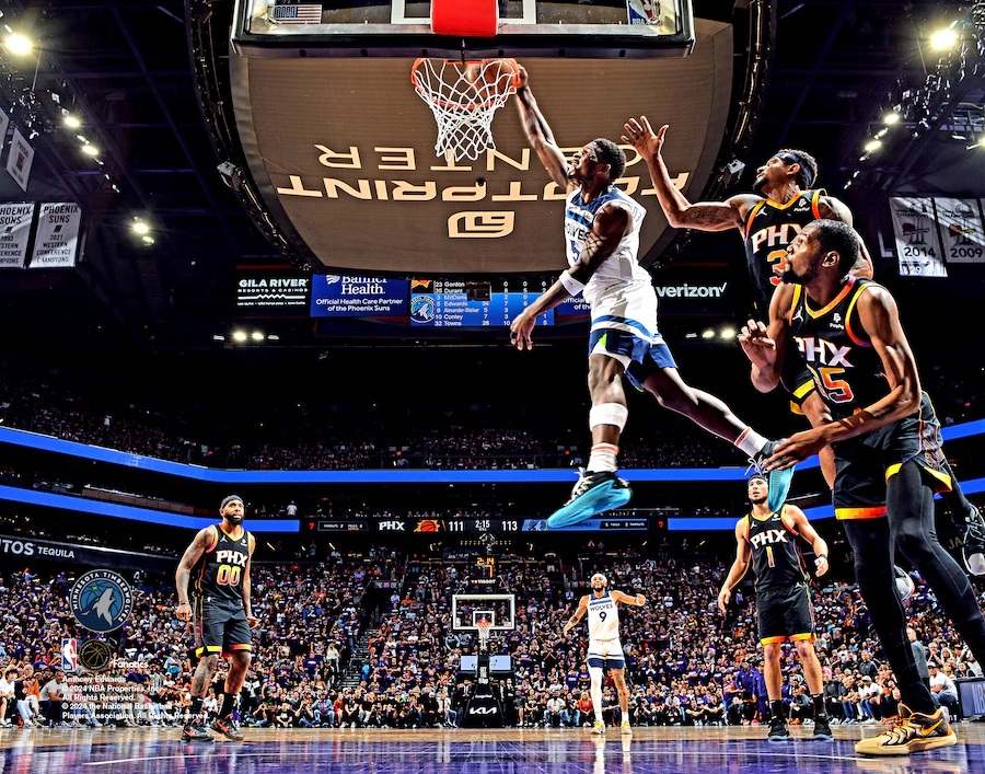 / Anthony Edwards Minnesota Timberwolves 2024 Western Conference Playoffs First Round Game 4 vs. Phoenix Suns Dunk Photograph