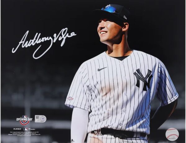 Commemorate an unforgettable moment for New York Yankees fans with this Anthony Volpe autographed 11" x 14" Opening Day Spotlight Photograph. It showcases the prospect's unique signature with an image from his New York Yankees debut to make it the perfect memorabilia piece for your MLB collection.