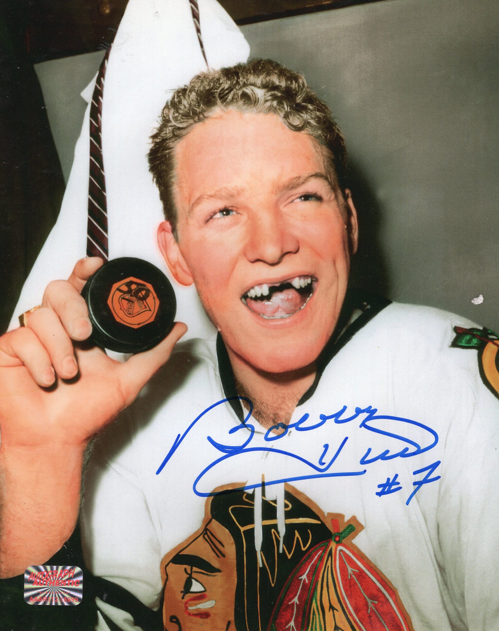 This classic 8x10 photo features Bobby Hull holding a puck, capturing a timeless portrait of one of hockey’s most legendary figures. With a confident, composed look, Hull’s unmistakable presence reflects the power and precision that defined his Hall of Fame career. The puck in hand symbolizes his prolific scoring ability and the countless milestones he achieved as one of the most dominant players of hockey’s golden era. Rich in history and nostalgia, this image is a standout collectible that perfectly honors the legacy of “The Golden Jet” and his lasting impact on the game.