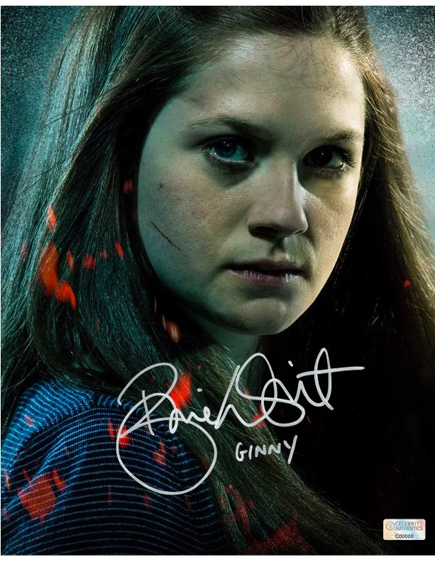 This 8×10 close up photo of Bonnie Wright as Ginny Weasley has been personally hand-signed by Bonnie during her signing with Celebrity Authentics. Item ships affixed with Celebrity Authentics serial-numbered and tamper evident Authentication Hologram and includes Celebrity Authentics Certificate of Authenticity featuring picture of Bonnie signing photo.