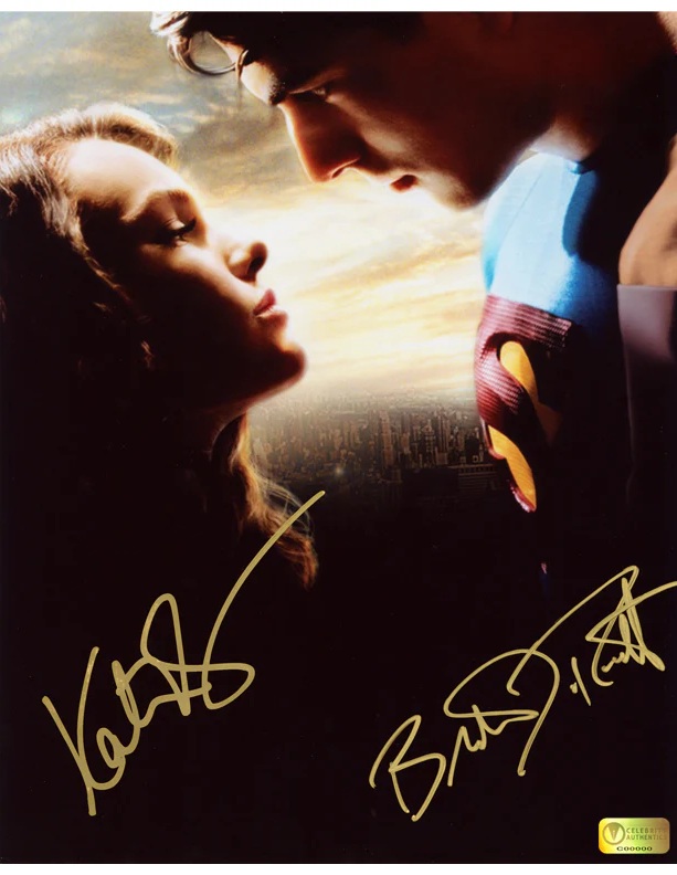 This 8x10 photo from Superman Returns of Superman and Lois Lane has been personally hand-signed by Brandon Routh and Kate Bosworth during their signings with Celebrity Authentics. After visiting to the lost remains of the planet Krypton, the Man of Steel returns to Earth and must deal with the consequences of his long absence in this superhero adventure. Item ships affixed with Celebrity Authentics serial-numbered and tamper evident Authentication Hologram and includes Celebrity Authentics Certificates of Authenticity featuring picture of Kate and Brandon signing photo.