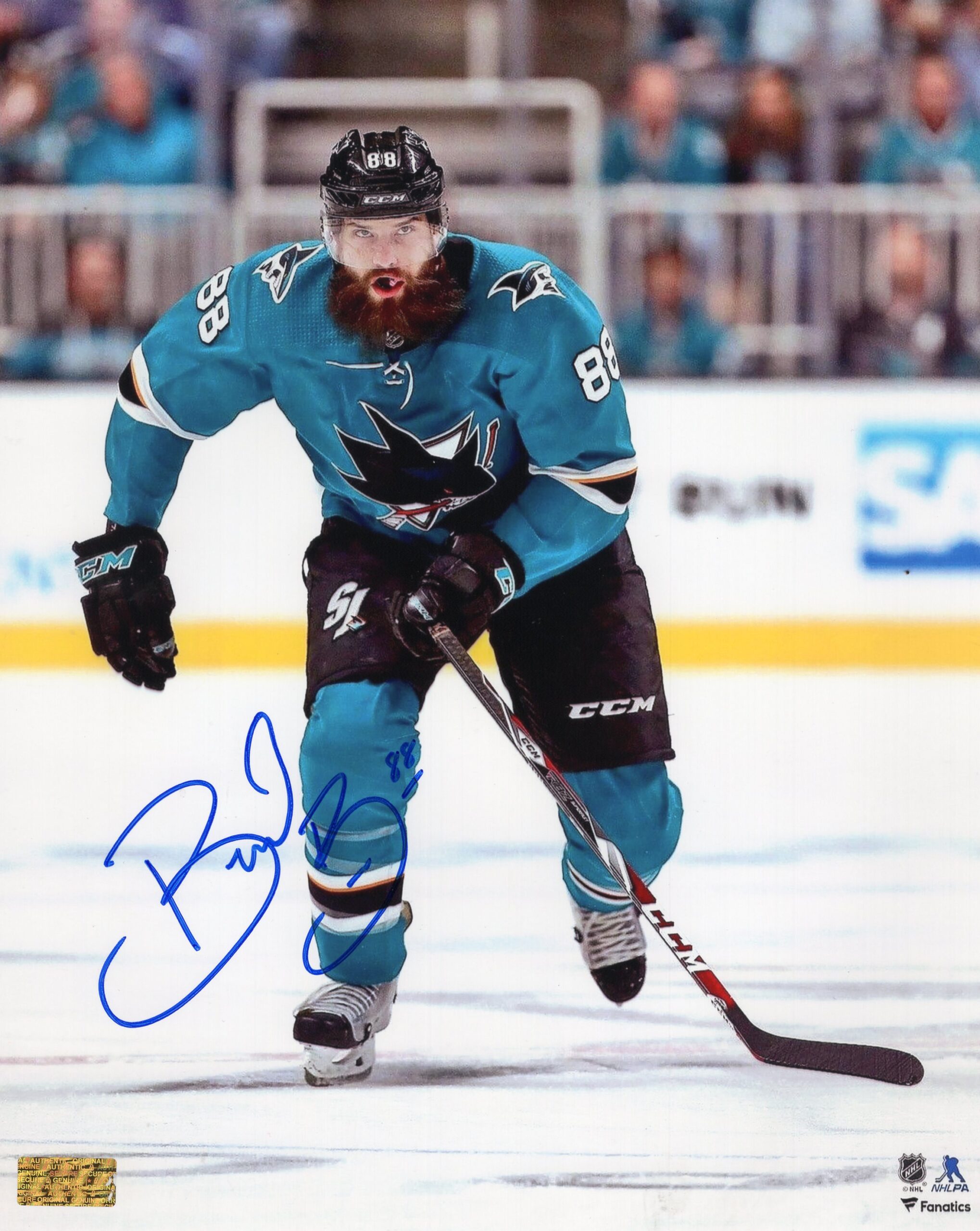 Brent Burns San Jose Sharks Turquoise Jersey Autographed 8x10 Photo quantity