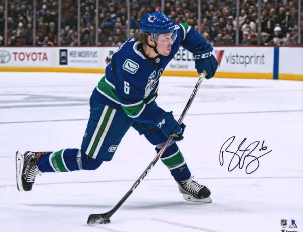 This 16" x 20" photograph has been personally hand-signed by Brock Boeser. It is officially licensed by the National Hockey League and comes with an individually numbered, tamper-evident hologram from Fanatics Authentic. To ensure authenticity, the hologram can be reviewed online. This process helps to ensure that the product purchased is authentic and eliminates any possibility of duplication or fraud.