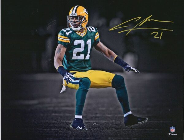 Display in your home or office an exciting Green Bay Packers moment forever preserved with this 11" x 14" Green Jersey Spotlight Photograph autographed by Charles Woodson. As a conversation starter, it gives you a chance to relive that point in time and share your passion for the Green Bay Packers.