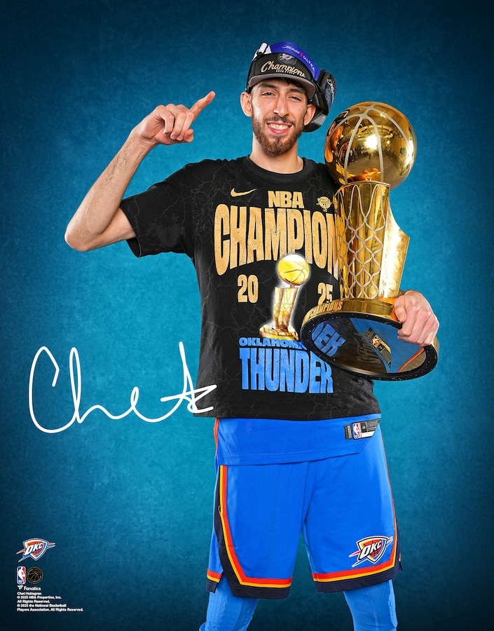 The final buzzer has sounded on the season and the Larry O'Brien Championship Trophy belongs to the Oklahoma City Thunder. Commemorate the incredible title run with this Chet Holmgren autographed 16" x 20" 2025 NBA Finals Champions Trophy Photograph. This collectible comes with an individually numbered, tamper-evident hologram that can be verified online to guarantee its authenticity and features bold details to help keep the celebration going for years to come.