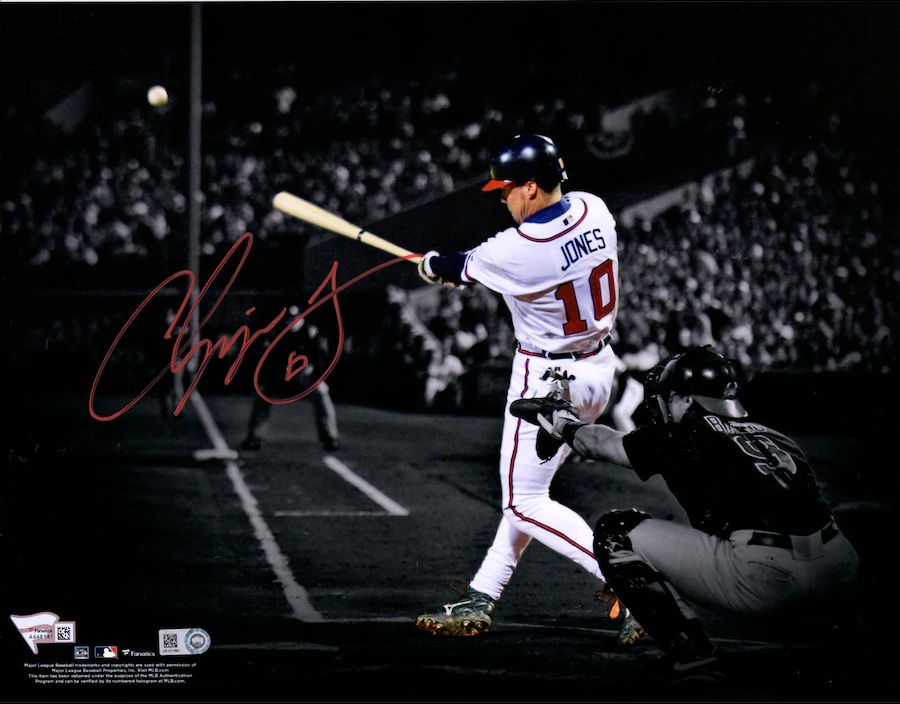 Display in your home or office an exciting Atlanta Braves moment forever preserved with this 11" x 14" Spotlight Hitting Photograph autographed by Chipper Jones. As a conversation starter, it gives you a chance to relive that point in time and share your passion for the Atlanta Braves.