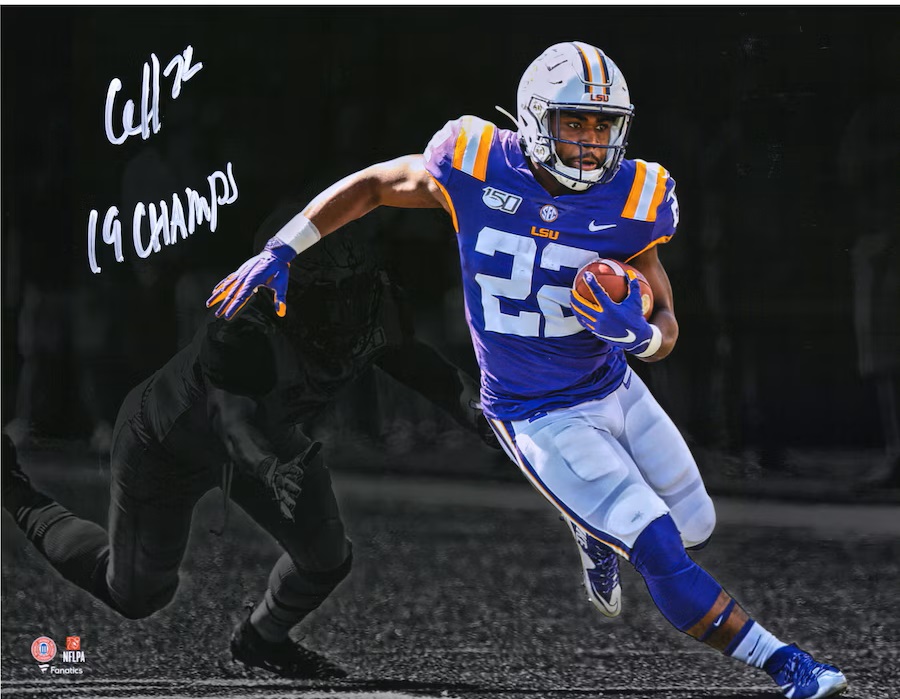 Clyde Edwards-Helaire LSU Tigers Autographed 11″ x 14″ Spotlight Photograph with “19 Champs” Inscription