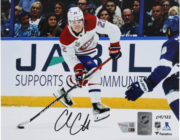 Cole Caufield Montreal Canadiens Autographed 8″ x 10″ White Jersey Shooting Photograph – Limited Edition of 122