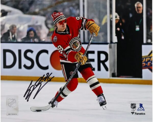 Connor Bedard Chicago Blackhawks Autographed 16″ x 20″ 2025 Winter Classic Photograph