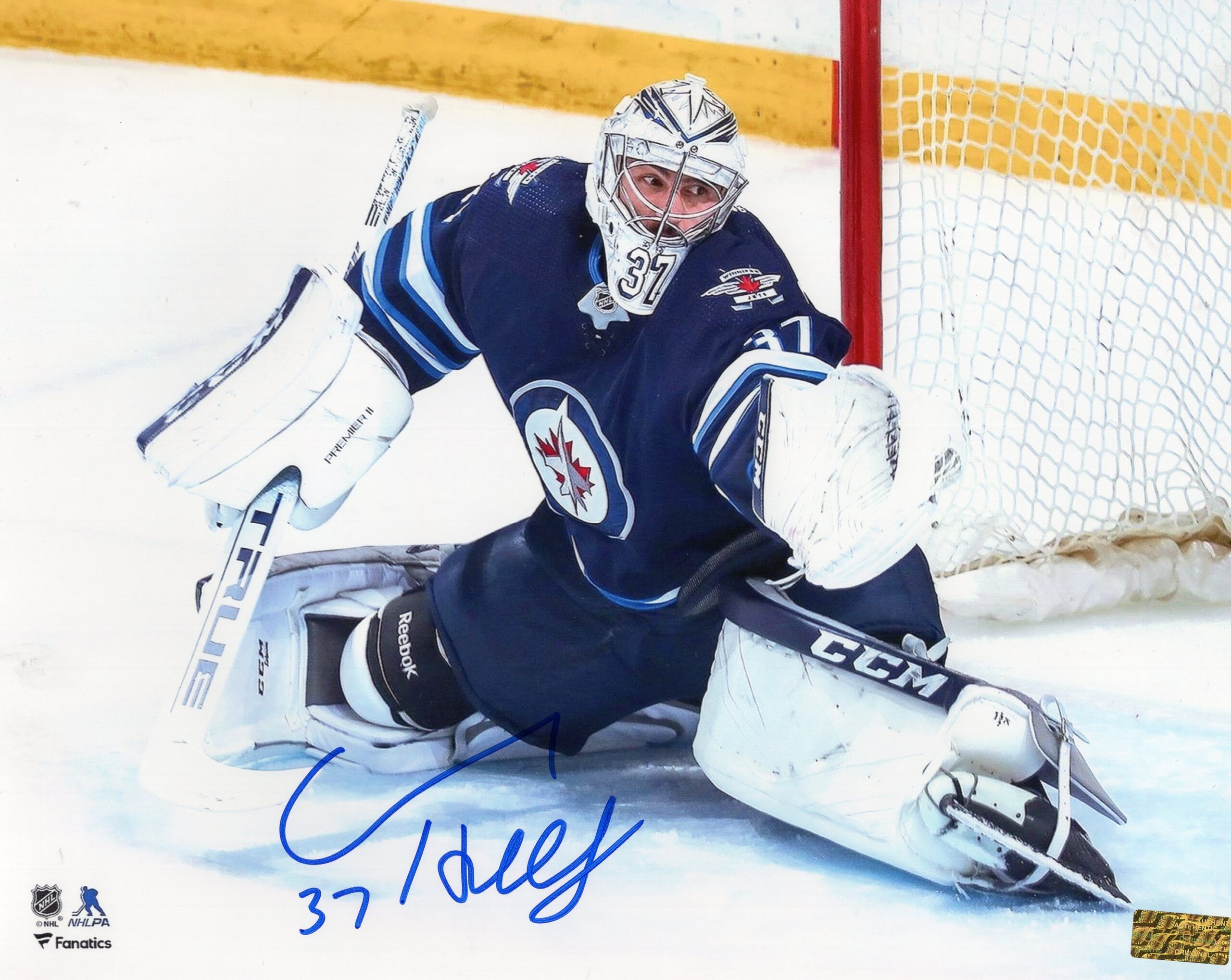 Connor Hellebuyck Winnipeg Jets Making A Save Autographed 8x10 Photo quantity