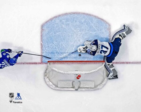 / Connor Hellebuyck Winnipeg Jets Unsigned Diving Save Photograph