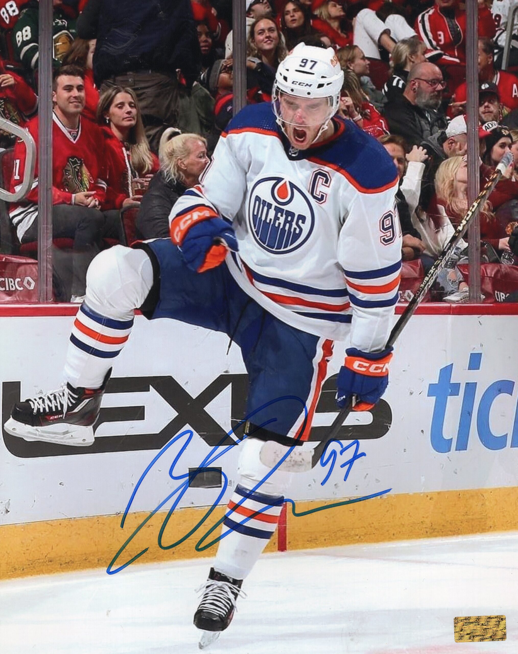 This autographed 8x10 photo features Edmonton Oilers captain Connor McDavid in the midst of scoring a goal, showcasing his explosive speed and elite offensive skill. Captured at the moment of triumph, McDavid is seen celebrating as the puck finds the back of the net, embodying the precision and dominance that define his game. Dressed in his Oilers uniform, this action-packed image highlights one of the NHL’s most electrifying players at his very best. Hand-signed by McDavid, this photo is a premier collectible for Oilers fans and hockey collectors alike, celebrating a generational talent in a defining scoring moment.