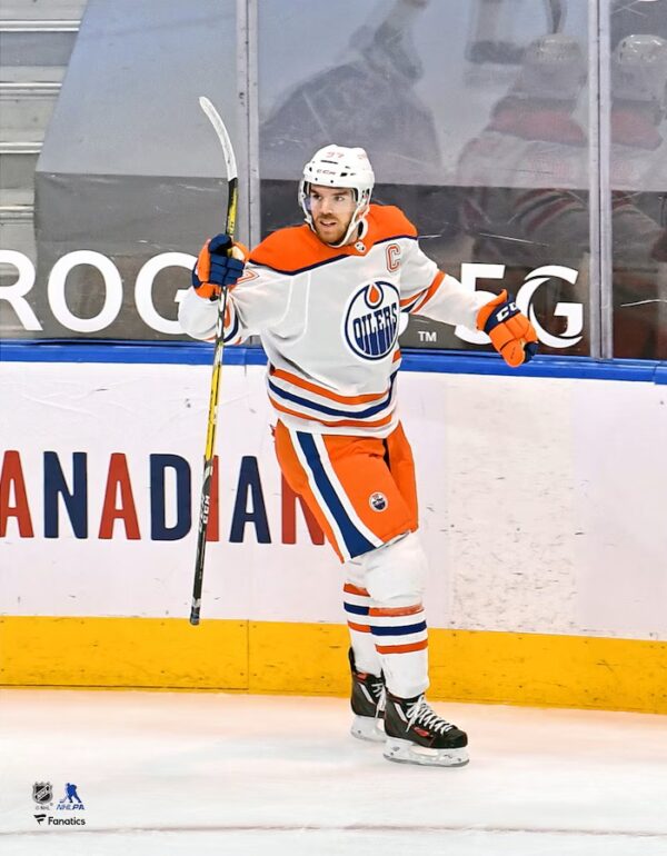 Connor McDavid Edmonton Oilers Unsigned White Reverse Retro Jersey Goal Celebration Photograph