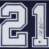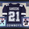 Custom frame measures 34x42 in size and features a jersey hand-signed by Deion Sanders.