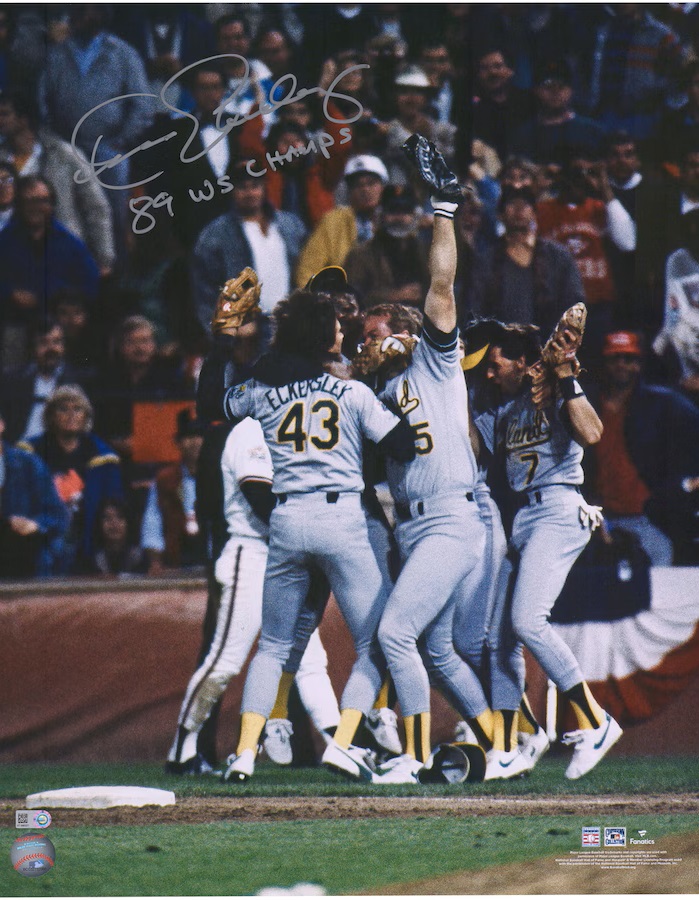 Dennis Eckersley Oakland Athletics Autographed 16” x 20” 1989 World Series Celebration Photograph with ”89 WS CHAMPS” Inscription