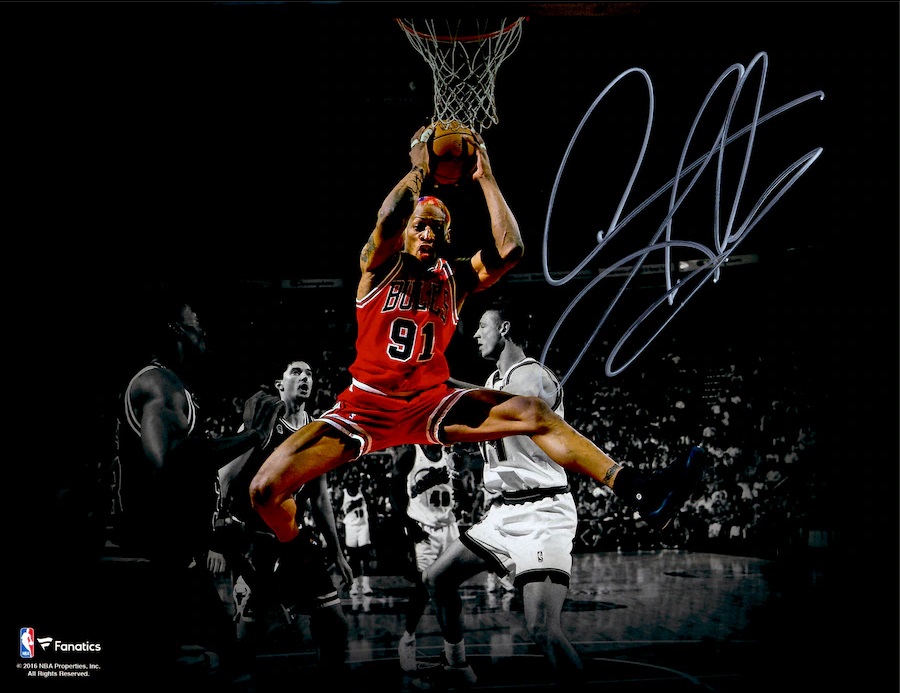 Dennis Rodman Chicago Bulls Autographed 11" x 14" Spotlight Rebound Photograph quantity