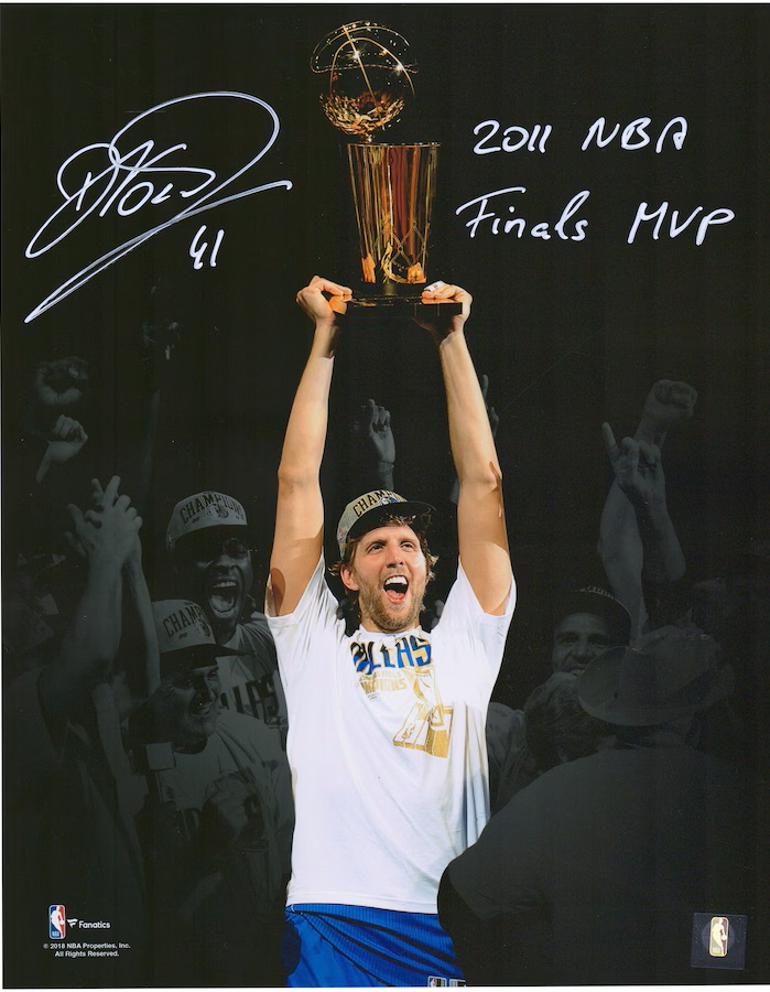 Dirk Nowitzki Dallas Mavericks Autographed 11″ x 14″ 2011 NBA Finals Spotlight Photograph with “2011 NBA Finals MVP” Inscription