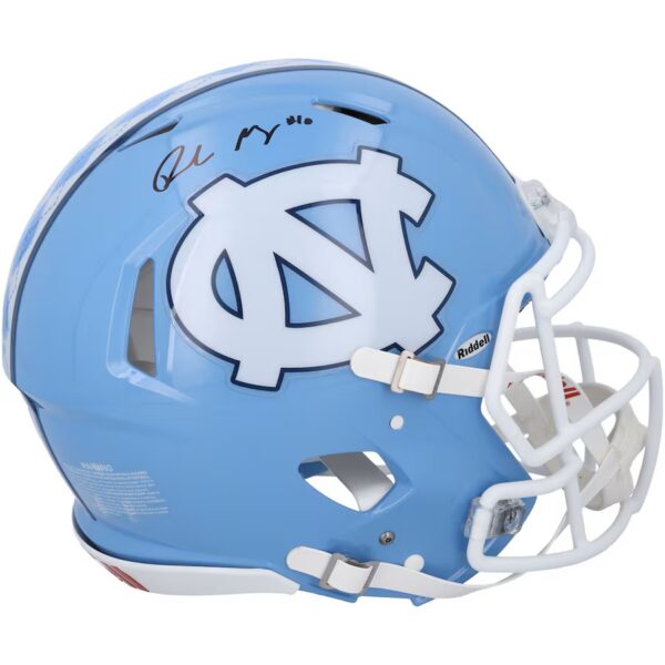 Elevate your North Carolina Tar Heels collection with this Drake Maye Autographed Riddell Speed Authentic Helmet. This collectible is authenticated with FanSecure technology and its individually numbered, tamper-evident hologram can be verified online at Fanatics.com/FanSecure. Widely considered one of the top prospects for the 2024 NFL Draft, Maye decided to return to Chapel Hill for his junior season after leading North Carolina to an appearance in the 2022 ACC Championship Game.