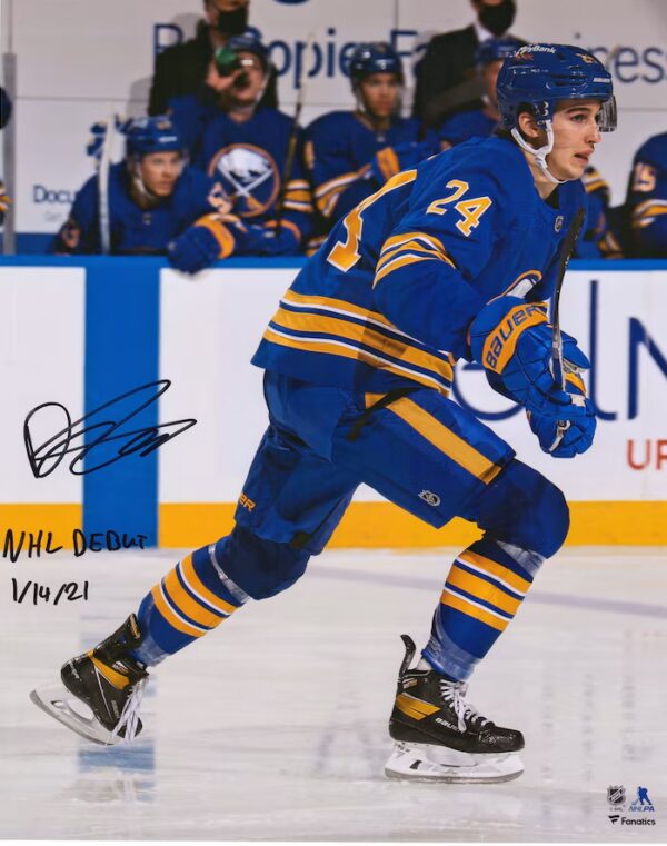 Dylan Cozens Buffalo Sabres Autographed 16″ x 20″ NHL Debut Photograph with “NHL Debut 1/14/21” Inscription