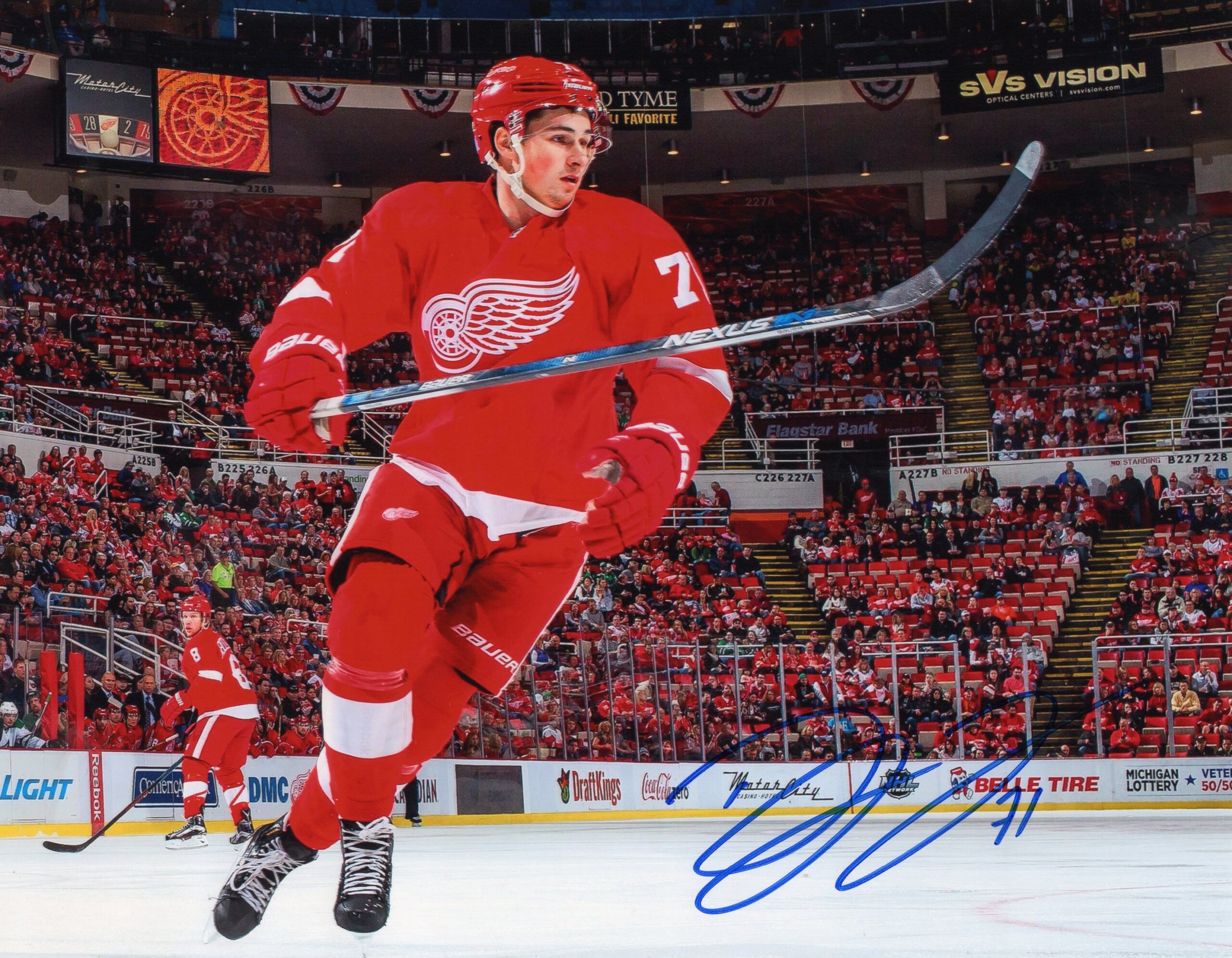 This original photograph captures Dylan Larkin in action. It is officially licensed by the National Hockey League.