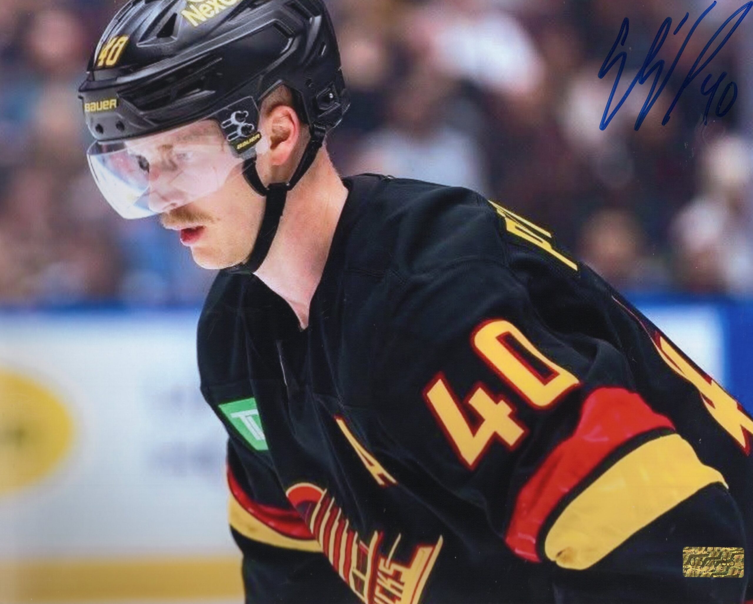 This autographed 8x10 photo of Elias Pettersson features the Vancouver Canucks star forward in the sleek black jersey, captured in an intense game-action moment. Pettersson’s focus and smooth skating are on full display, reflecting the skill, creativity, and hockey IQ that define his elite play. The bold, clean autograph elevates this photo into a premium collectible, making it an excellent addition for Canucks fans and serious hockey memorabilia collectors.