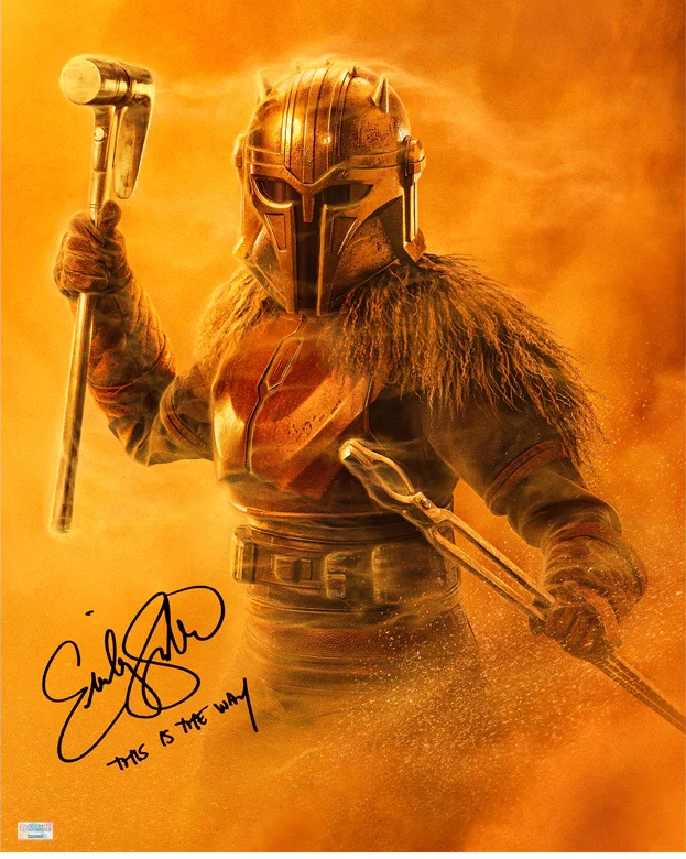 This Star Wars The Mandalorian The Armorer 16x20 Photo has been personally hand-signed by Emily Swalllow during her signing with Celebrity Authentics. Emily also added "This is the Way", a mantra and a core tenet of Mandalorian culture, representing their adherence to a strict code of conduct, traditions, and beliefs! Once a glorious world, the surface of Mandalore was laid waste by war, leading Duchess Satine Kryze to renounce the planet’s violent history and declare neutrality in the Clone Wars Ships affixed with Celebrity Authentics serial-numbered and tamper evident Authentication Hologram and includes Celebrity Authentics Certificate of Authenticity featuring picture of Emily signing photo.