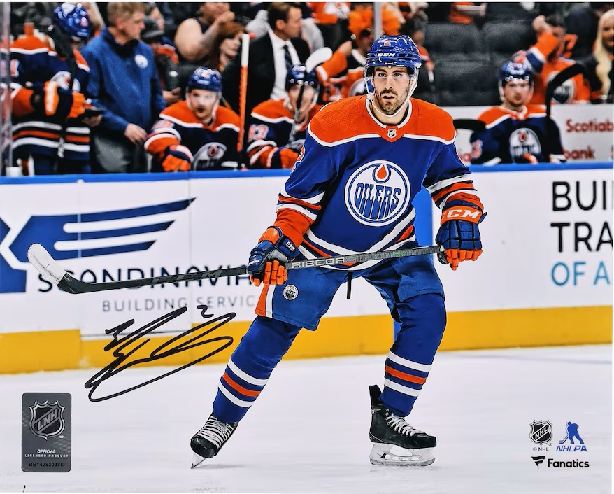 Display in your home or office an exciting Edmonton Oilers moment forever preserved with this 16" x 20" Blue Jersey Skating Photograph autographed by Evan Bouchard. This unique piece of memorabilia includes the inscription "Lets Go Oilers!". As a conversation starter, it gives you a chance to relive that point in time and share your passion for the Edmonton Oilers.
