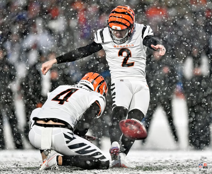 / Evan McPherson Cincinnati Bengals Unsigned Kicks in Snow Photograph