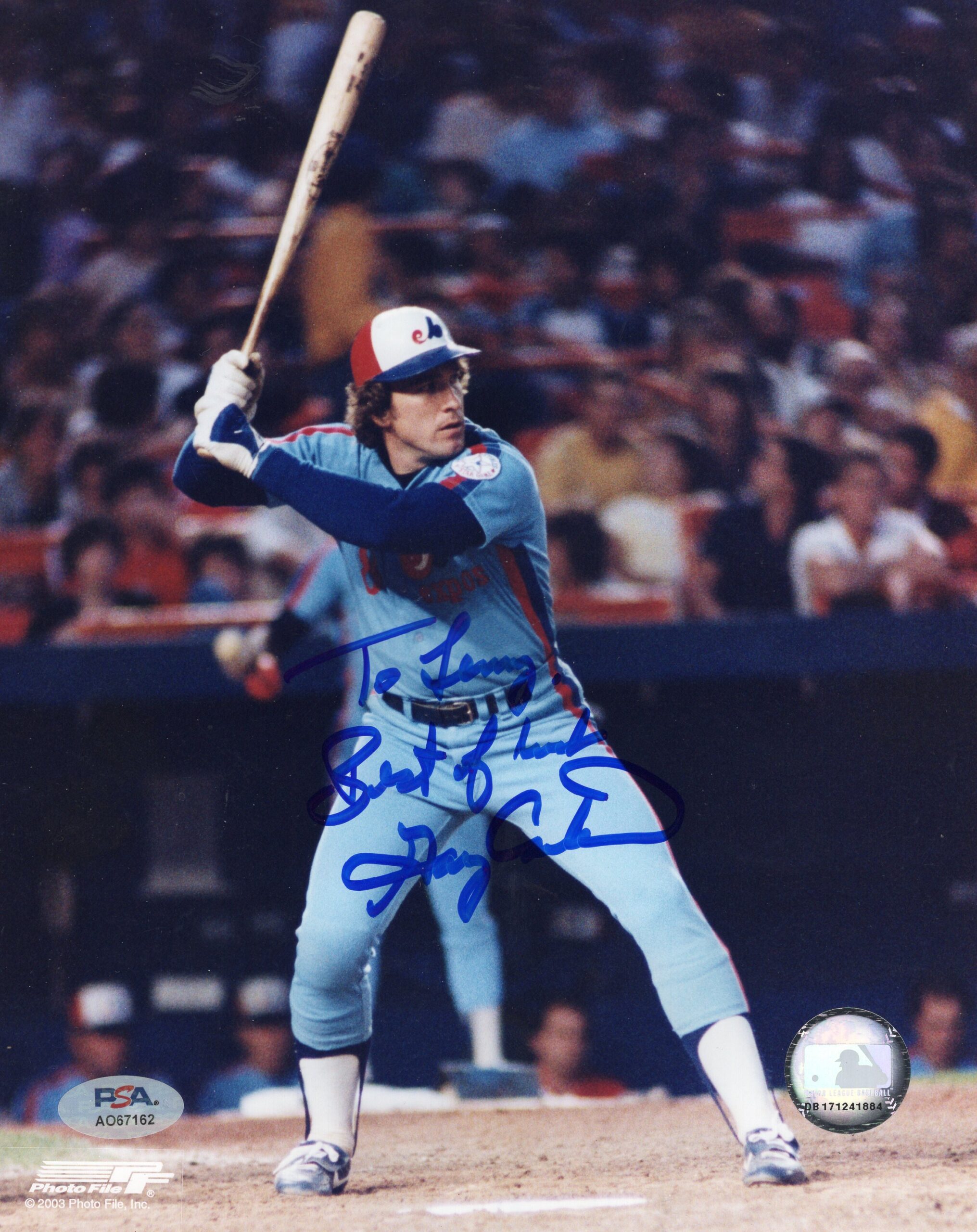 This personalized autographed 8x10 photo features Gary Carter in his classic Montreal Expos uniform, capturing the Hall of Fame catcher during his time as the heart and soul of the franchise. Shown in an on-field action pose, Carter’s intensity and leadership are on full display, reflecting the passion that earned him the nickname “The Kid.” The image celebrates the rich history of the Expos and Carter’s lasting impact on Montreal baseball. His bold autograph, accompanied by a personalized inscription, is beautifully signed on the photo, making this a truly special and unique collectible for Expos fans and baseball memorabilia collectors alike.