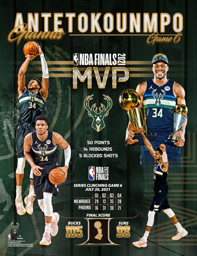 / Giannis Antetokounmpo Milwaukee Bucks Unsigned 2021 Bill Russell NBA Finals MVP Collage Photograph