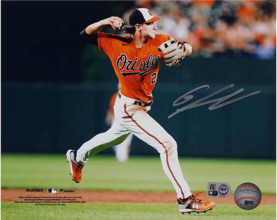 If Gunnar Henderson is one of your favorite players on the Baltimore Orioles, then be sure to pick up this autographed 8" x 10" Orange Jersey Throwing Photograph. Featuring a hand-signed signature from the team's second-round pick in the 2019 MLB Draft, it's the perfect way to showcase your excitement for all that Gunnar Henderson will achieve with the Orioles.