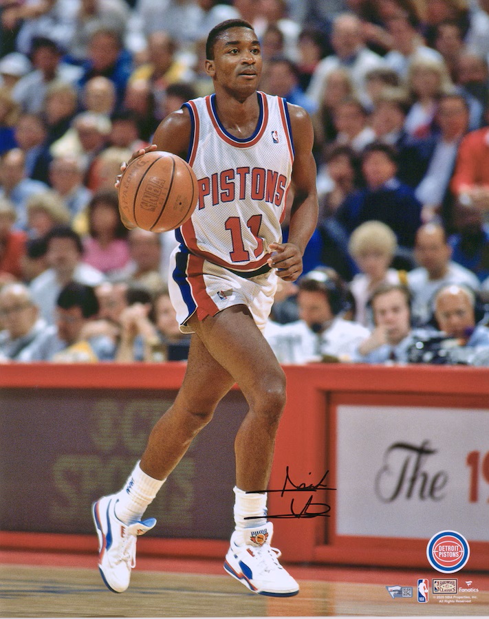 Isiah Thomas Detroit Pistons Autographed 16″ x 20″ Dribbling in White Photograph