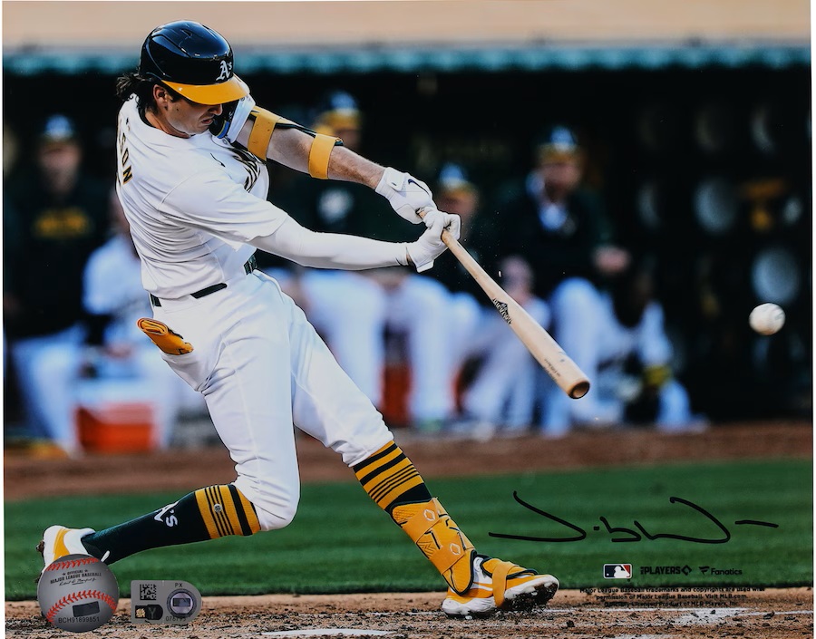 Elevate your collection of Athletics memorabilia by picking up this Jacob Wilson autographed 8" x 10" Hitting Photograph. Featuring a striking image and signature from the Athletics star, it's a must-have addition for any die-hard fan or serious collector. This collectible also includes an individually numbered, tamper-evident hologram that can be verified online to certify its authenticity to make it the perfect way to showcase your Jacob Wilson fandom.