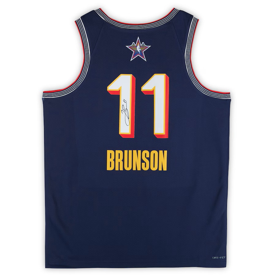 Elevate your collection of New York Knicks memorabilia with this Jalen Brunson autographed Navy Nike 2025 NBA All-Star Game Swingman Jersey. It features eye-catching details and a distinct signature from the superstar point guard. Additionally, this collectible includes an individually numbered, tamper-evident hologram that can be verified online to certify authenticity.
