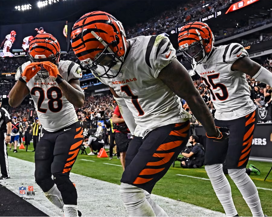 / Ja’Marr Chase Joe Mixon & Tee Higgins Cincinnati Bengals Unsigned Celebrating with a Group Griddy Photograph