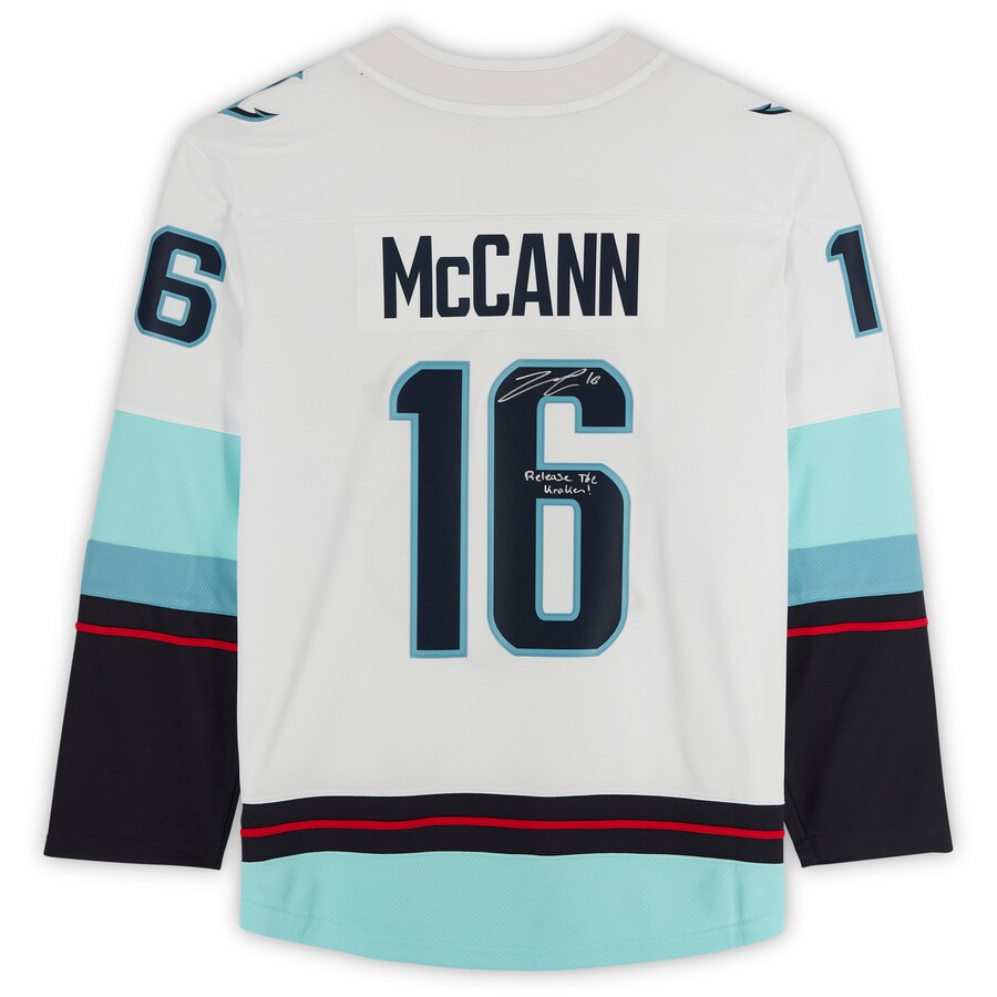 Take your collection of Seattle Kraken memorabilia to the next level with this autographed Jared McCann Fanatics Breakaway Inaugural Season Jersey Patch Jersey. This awesome jersey features an inscription that says "Release the Kraken!" Whether displayed in your home or office, it's the perfect way to highlight your passion for the Seattle Kraken for years to come.