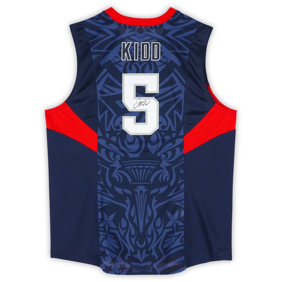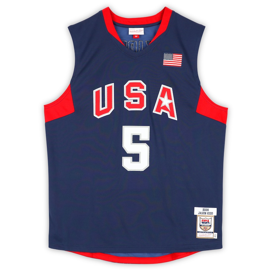 Elevate your collection of USA Basketball memorabilia with this Jason Kidd autographed Navy Mitchell & Ness 2008 Authentic Jersey. It features eye-catching team details and a distinct signature from the legendary guard. At the 2008 Beijing Olympics, Kidd and Team USA won gold after going undefeated in the tournament. Additionally, this jersey includes an individually numbered, tamper-evident hologram that can be verified online to certify authenticity.