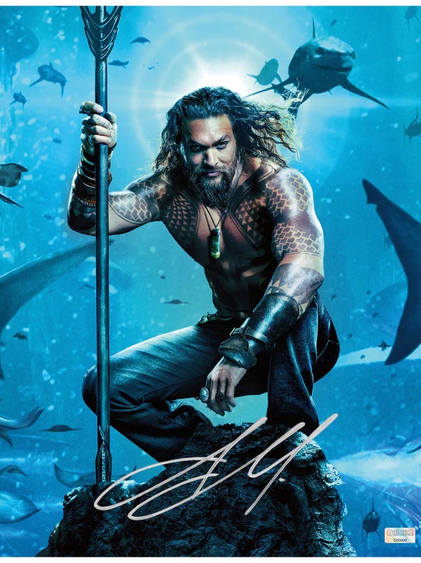This 11x14 photo of Jason Momoa as Aquaman has been personally hand-signed by Jason Momoa during his signing with Celebrity Authentics. Item ships affixed with the Celebrity Authentics serial-numbered and tamper evident Authentication Hologram and includes Celebrity Authentics Certificate of Authenticity featuring picture of Jason signing photo.