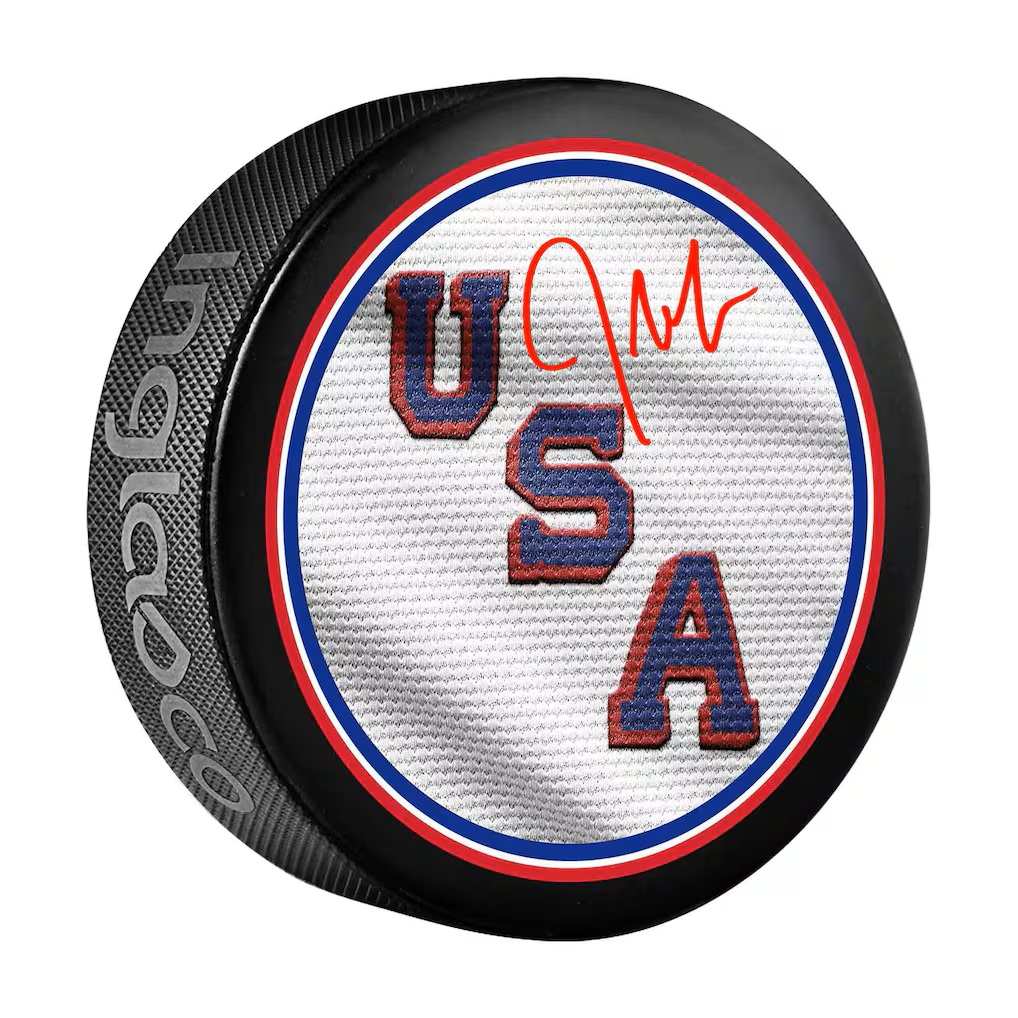 Elevate your collection of Team USA memorabilia with this Jeremy Swayman autographed hockey puck. With eye-catching details and the star's distinct signature, it's a must-have for any fanatic ready to celebrate the United States' monumental Gold Medal victory at the 2026 Milano Cortina Winter Olympics. Additionally, this collectible includes an individually numbered, tamper-evident hologram that can be verified online to certify authenticity.